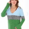 Мужская толстовка Де-факто (производитель Турция) с круглым вырезом стандартного кроя с зеленым блоком