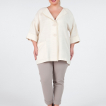 Описание: Современная блуза-рубашка Т-образного силуэта, с рубашечным воротником и рукавом длиной за локоть, из натуральных тканей-компаньонов. Удлиненная линия плеча…