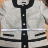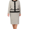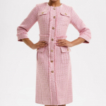 Платье женское из костюмно-плательной ткани типа Chanel полуприлегающего силуэта, длиной за колено, с центральной передней планкой от верха до низа с 8 пуговицами и бахромой…